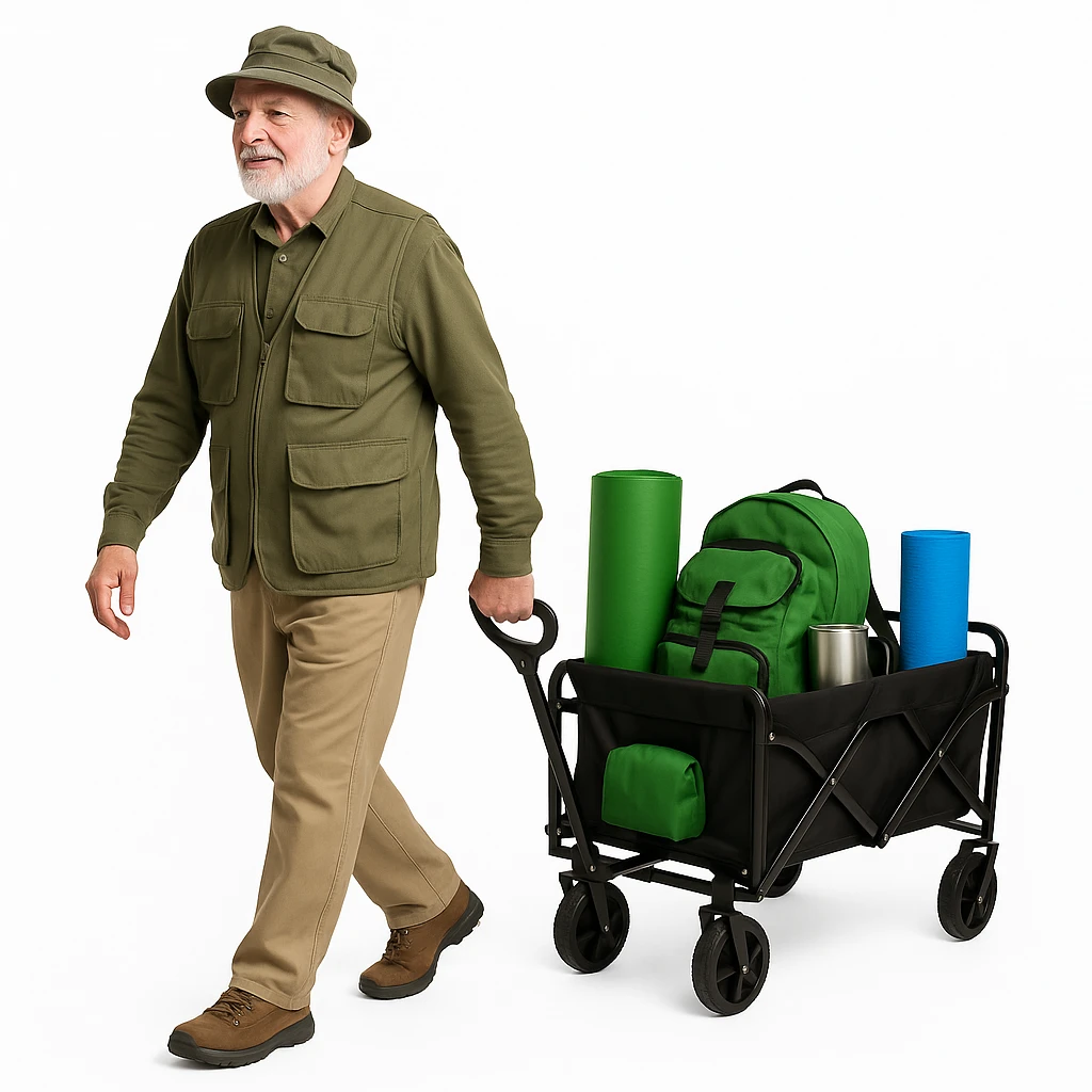 O Carrinho de Carga Camping Dobrável é a solução prática e robusta para transportar até 100kg com facilidade. Seu design compacto permite dobrar e guardar em qualquer espaço, enquanto sua estrutura de aço resistente e tecido impermeável garantem durabilidade. Conta com alça ergonômica, rodas com rotação 360° e porta-garrafas integrado, tornando-o ideal para camping, praia, piqueniques, feiras e uso diário. Perfeito para quem busca praticidade e conforto em atividades ao ar livre.