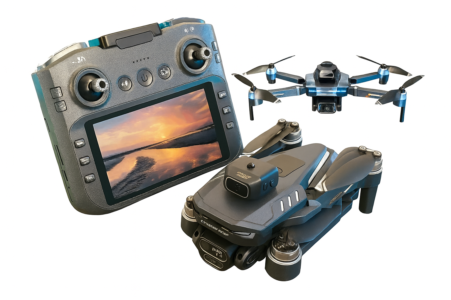 Seu controle remoto possui tela integrada, permitindo visualizar em tempo real as imagens transmitidas pelo drone, sem necessidade de smartphone. Conta ainda com recursos inteligentes como estabilização de voo, decolagem e pouso assistidos, além de retorno automático, garantindo mais segurança durante o uso.