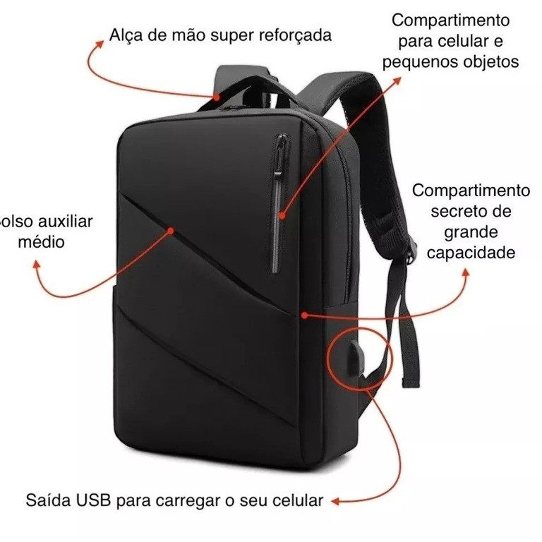 Esse modelo de mochila possui um design bem moderno e oferece uma série de opções de uso, sendo perfeita em diversas ocasiões. Ela possui compartimentos grandes com fecho de zíper duplo com excelente qualidade e também um compartimento menor frontal também com fechamento de zíper.