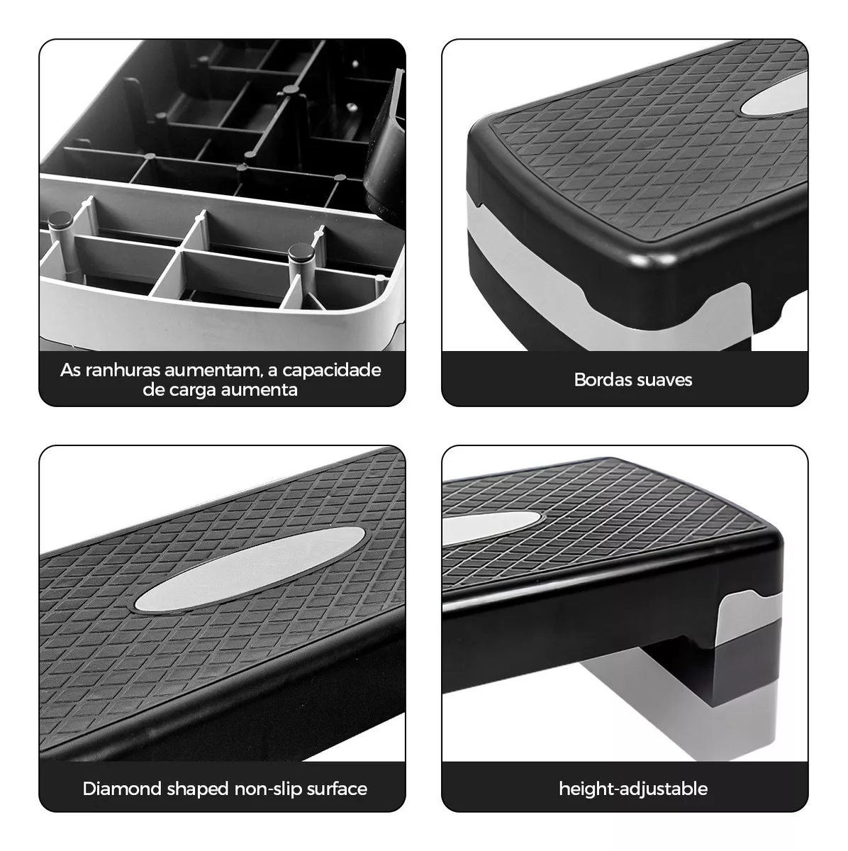- Altura Ajustável: Permite a escolha entre dois níveis (10 cm e 15 cm), facilitando a adaptação da intensidade do treino.